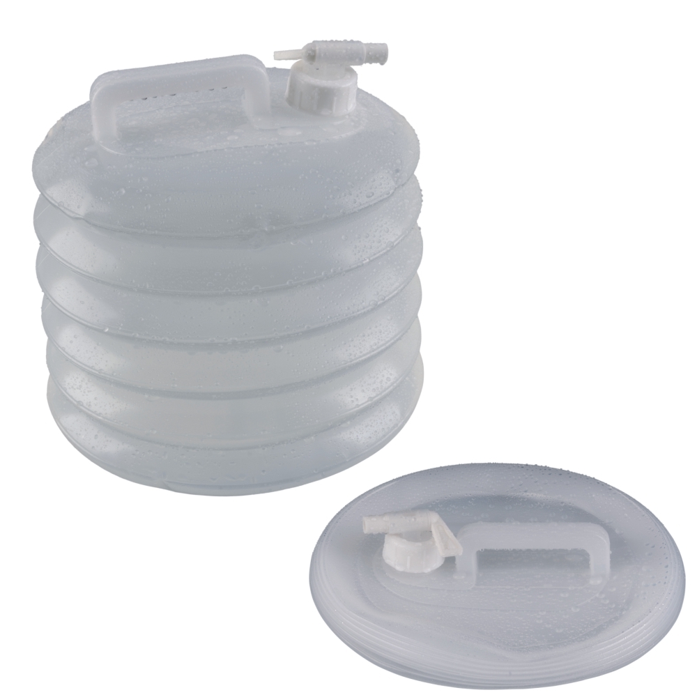 Made from food-grade PET. Handy tap and firm handle. Folds flat for easy storage. 15 Liter.