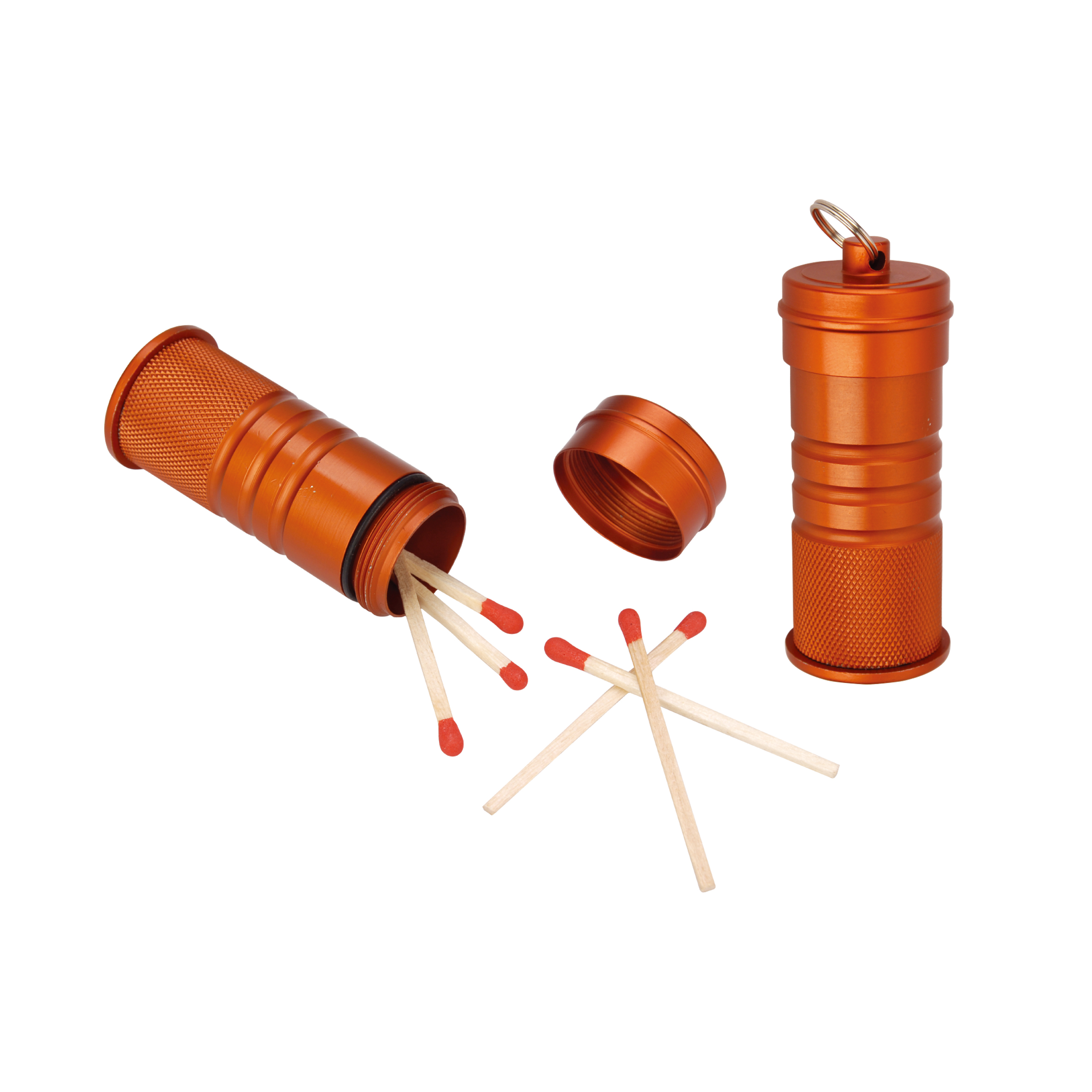 Aluminum, waterproof container to keep your matches dry. 1" x 2.6" 1.1 oz.