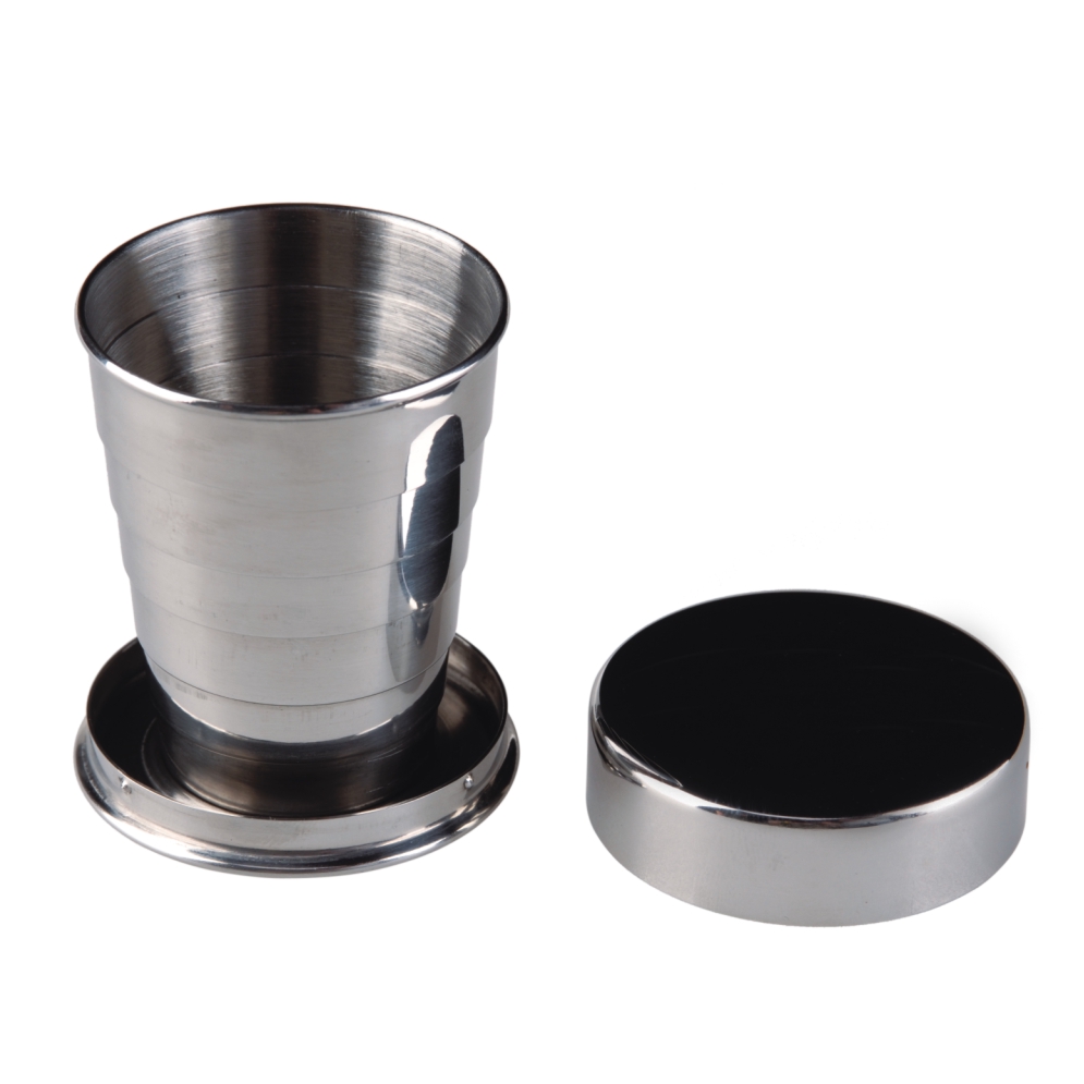 Stainless steel Telescoping collapsible cup Includes protective cap Fluid ounces: 2 Weight: 2.6 oz.